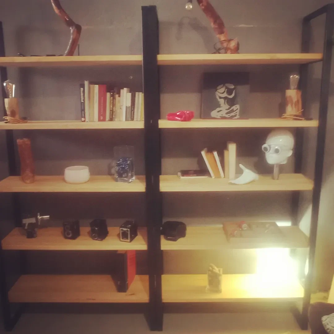 Baldas gruesas de madera, 2m de largo, sobre unos tres soportes metálicos color negro (a eligir)